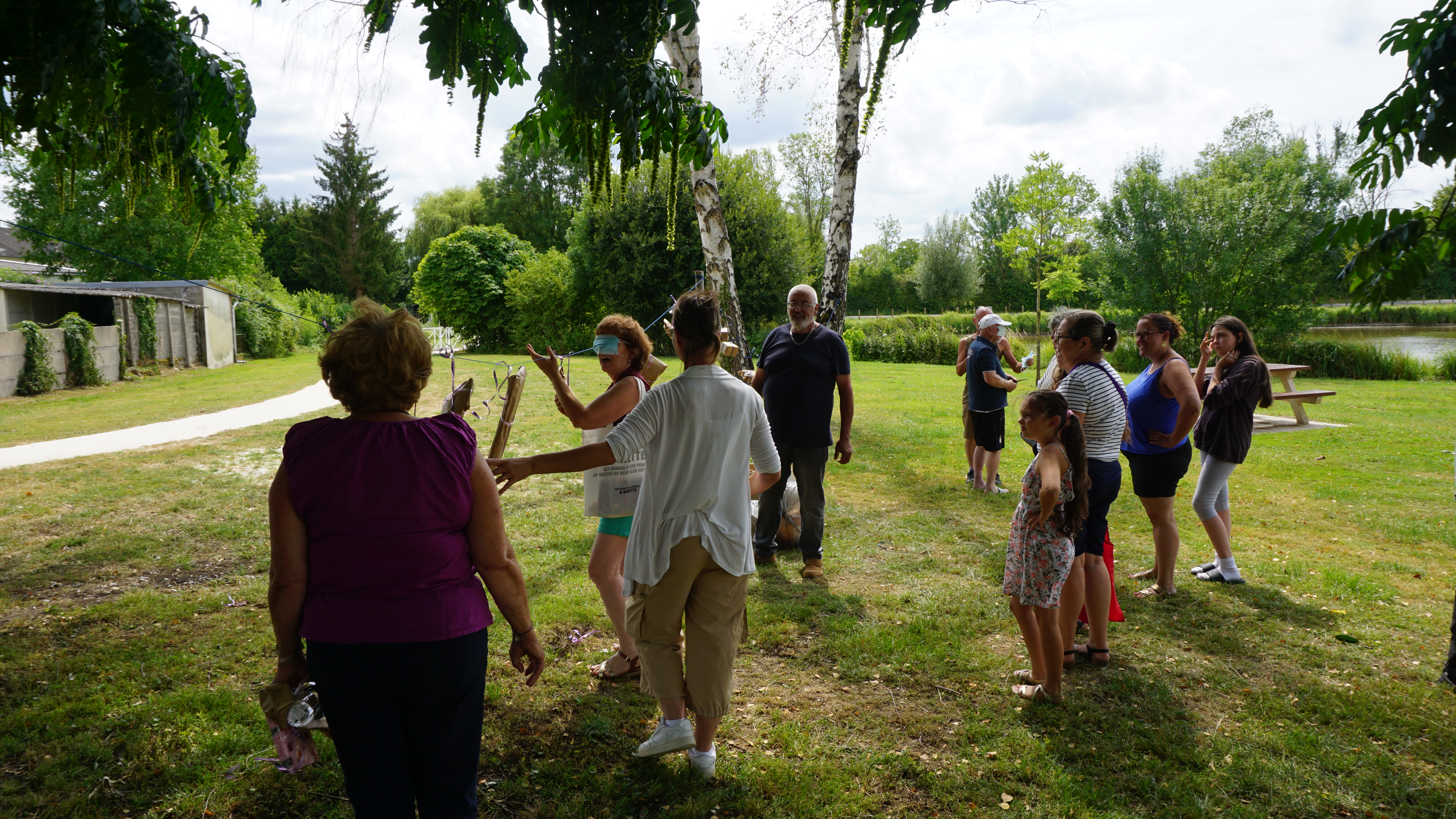 Le 14 nous avons apprécié un peu d'air au bord de l'étang, pour les jeux : pêche pour les petits, course avec des seaux d'eau, course dans des sacs, chamboule-tout, colin-maillard et pour finir un goûter pour tous.