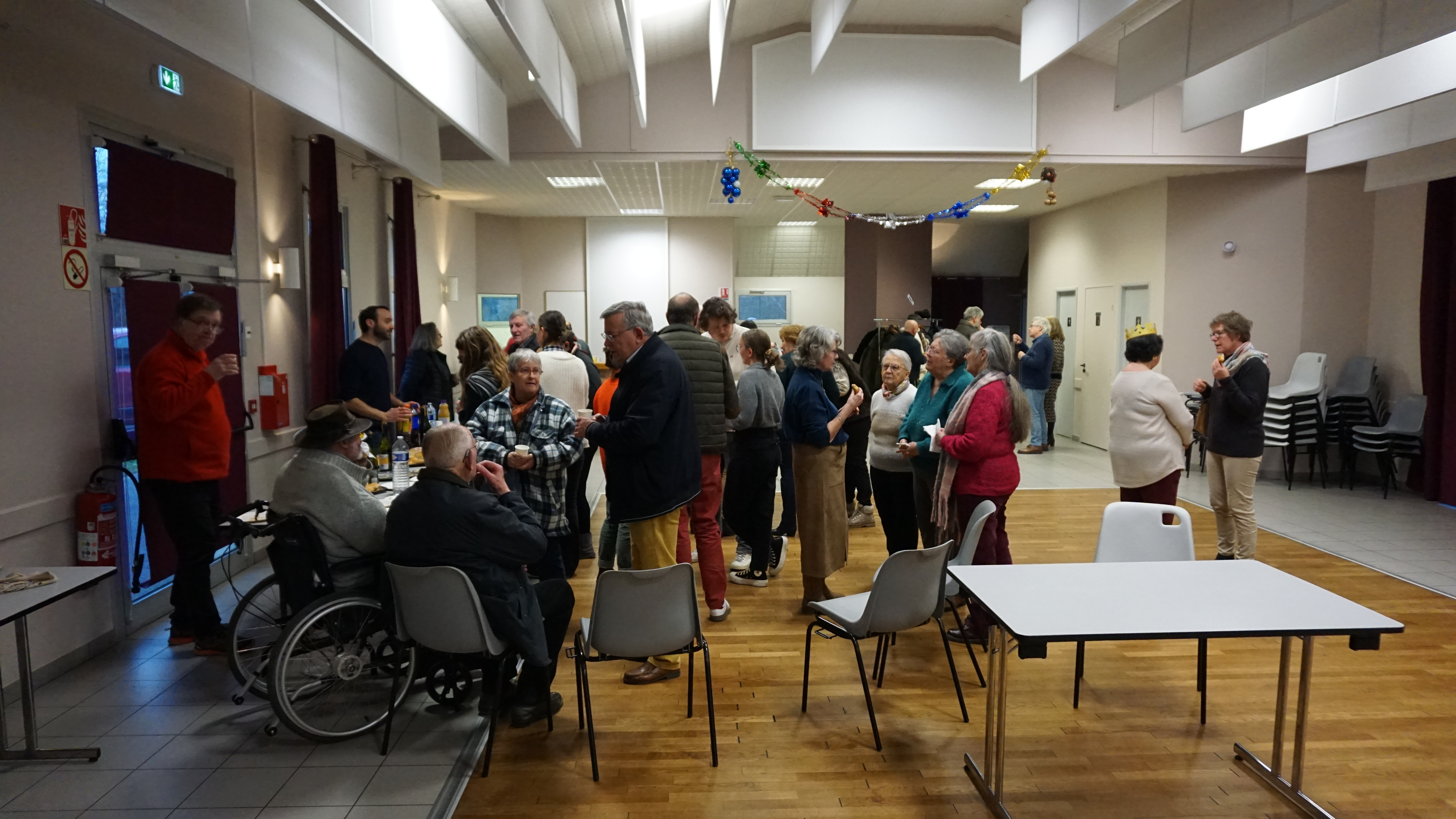 16h : vœux du Maire, rétrospective 2016, remise des prix des maisons fleuries et galettes. Beaucoup de monde malgré le froid et le verglas.