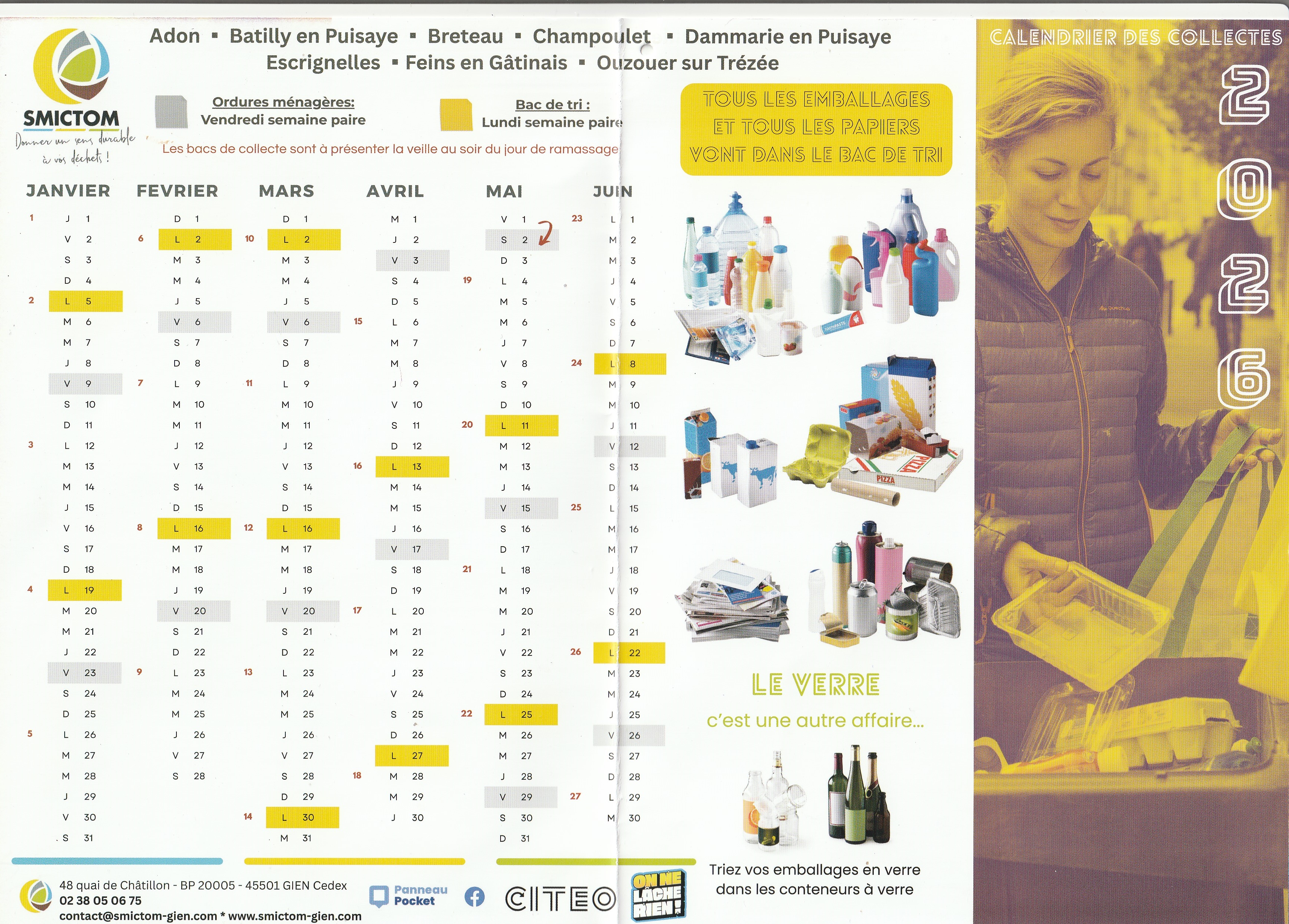 - Déchets recyclables : collecte le lundi, semaines paires