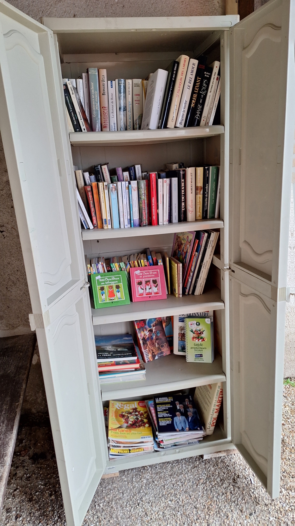 Notre « meuble à livres » fonctionne bien. L'étagère des enfants est régulièrement vidée. Si